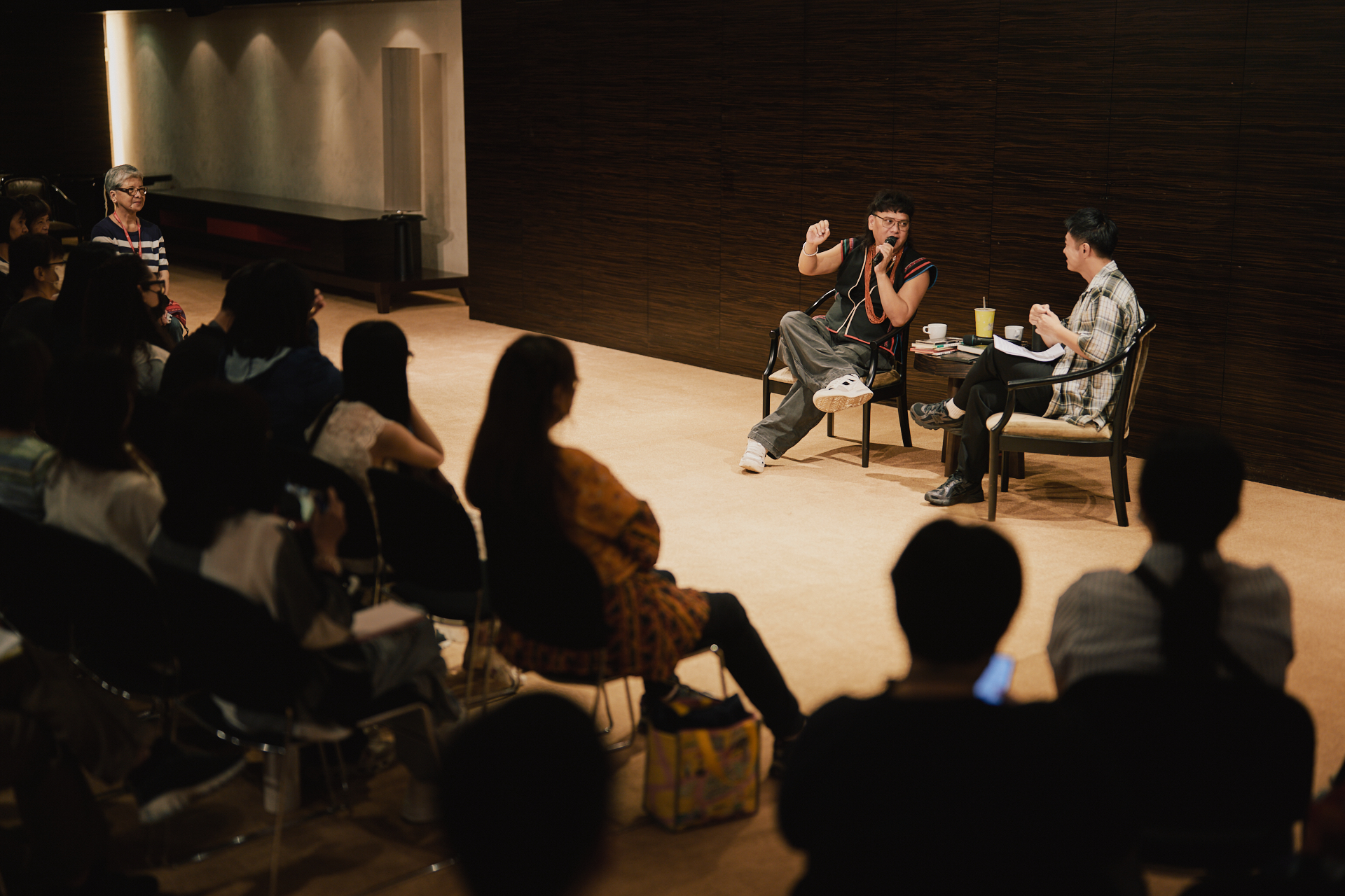 演出之前,两厅院邀请同为卑南族的作家马翊航,与桑布伊一同对谈彼此在土地、迁徙、语言与信仰上的感受与观察,他们各自从文学与音乐的创作出发,却又在卑南族的历史里,凝视出对传统与当代的共鸣。