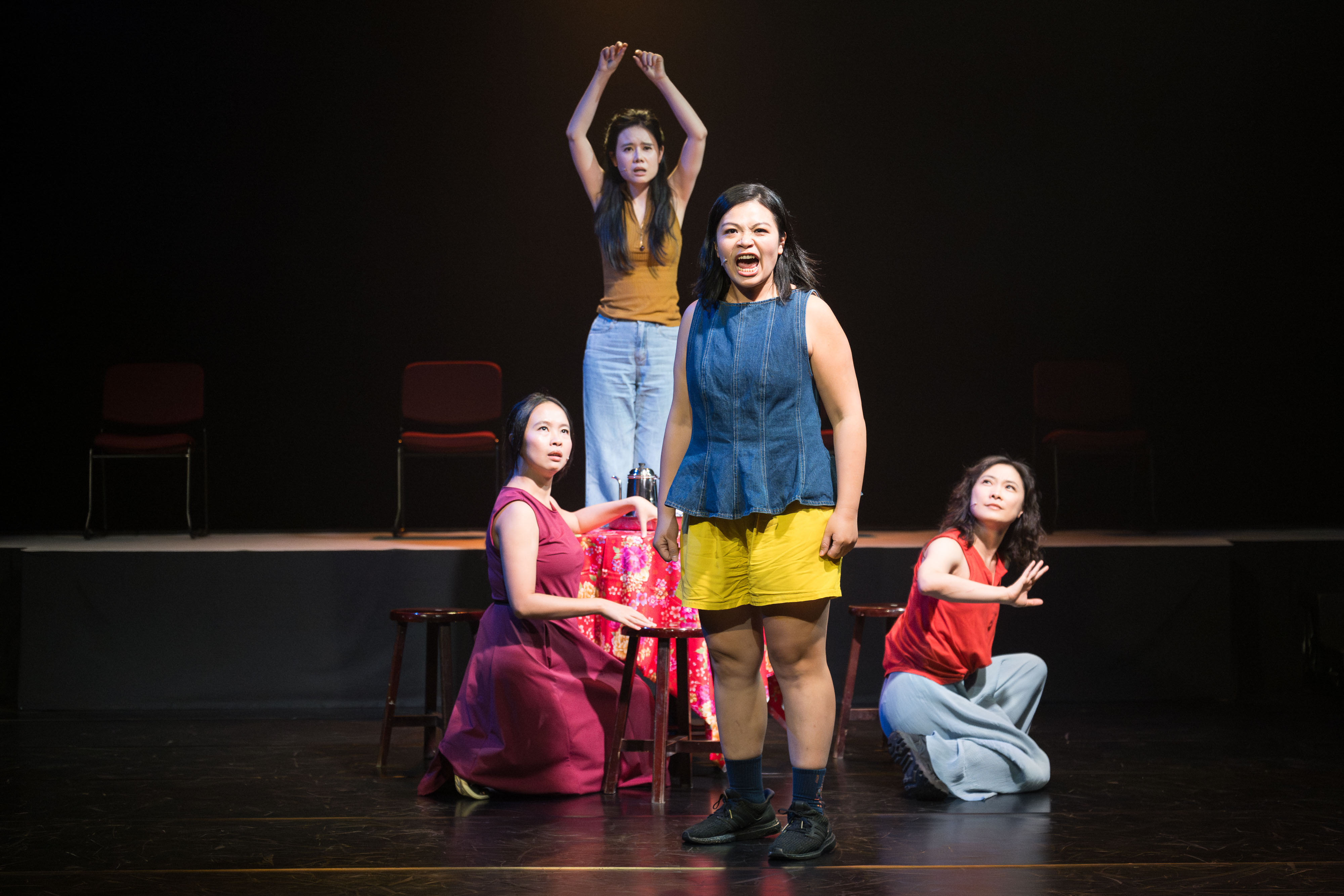 在《蓝衫之下》中,余彦芳、曾歆雁、彭若萱、李少榆四位女演员搬演多重角色,从客家女孩到客家阿婆,从客家媳妇到人生战场上的独立个体,展现剧本中的幽默与残酷。这部作品将「客家女性」的故事转化为「所有女性」的共同心声,并促使「所有男性」进行自我检视与反思,让每个人在《蓝衫之下》,看见自己,因为:「妳可以是妳。」