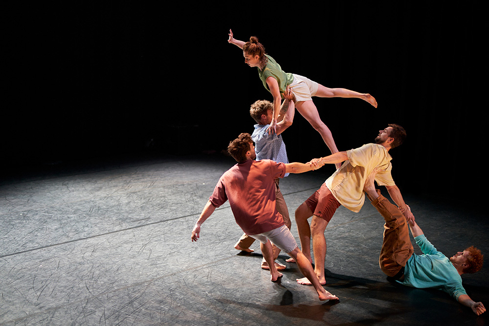 有别于《漫天混乱》的狂放,荷兰「手搭手特技组合」(Knot on hands)的 《蜿蜒 》(Meander)呈现的是一种节制的美感。5位表演者透过群体的信任与默契,不断在托举、倾斜、支撑与协作之间转换,如同自然景观,持续流动,壮丽又短暂。没有单一的英雄,没有对个体技艺的强调,将「合作」本身转化为美学核心,「我们如何成为1个群体」成了作品最动人的地方。