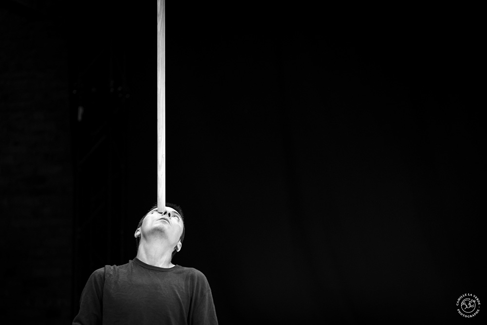 爱尔兰/德国团体 Squarehead Productions 的《棍子人》(Stickman)是一部让人脑洞大开的哲学马戏。舞台上仅有1名表演者、1根棍子与1台电视,当表演者尝试在身体各部位平衡棍子的同时,电视萤幕不断提供冷静旁白,为观众所见进行说明、解构与重组。外部的语言干预,让人产生错觉,似乎棍子逐渐夺走主导权,也让人与物之间难以分辨主从状态。这场演出兼具身体难度与结构思辨,融合马戏、观念艺术与形式美学,用最简单的形式承载最复杂的问题。