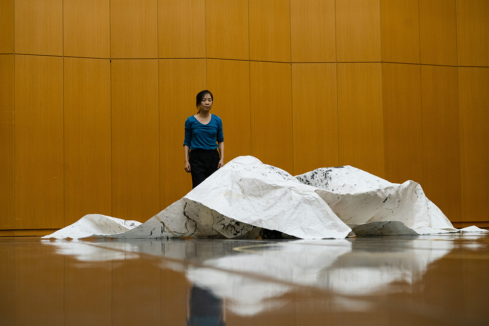苏安莉(以下简称苏):纸对我来说是另一个语言、空间中的另一个存在,如果说踩在地板是理所当然的一件事,那踩在脆弱的纸上,就成为跳舞时必须时刻关注的状态。你要知道什么时候控制、什么时候放,有些时候又要共处,这些声音会在跳舞时不断出现在耳边。因此我觉得纸是「第3个舞者」,此刻我们还在互相认识的阶段。