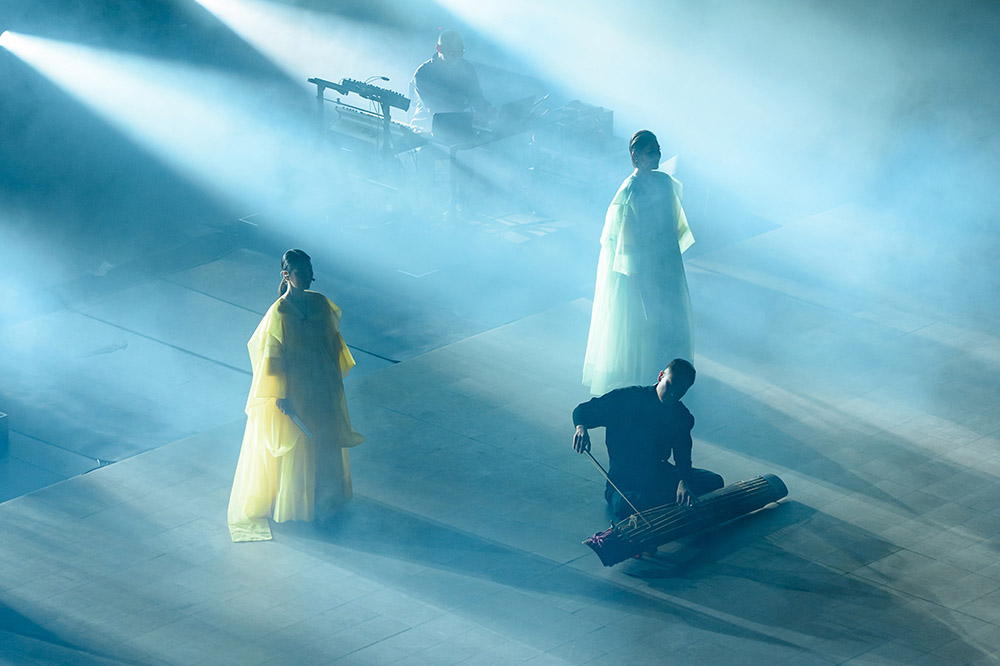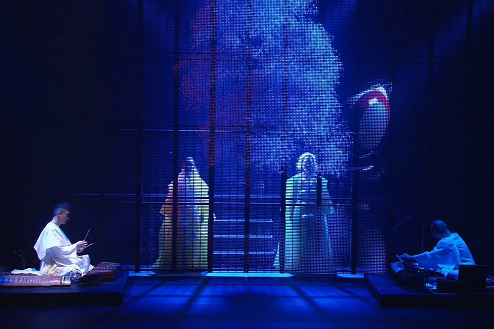 《看.见沈清》的观演重点之一,在于「声音可视化」的创作核心。演出团队将大型 LED 影像、雷射光束与多媒体装置视为与演员对话的「共演者」,让科技与艺术的结合更增添了感性的温度。而在音乐层面,《看.见沈清》保留了盘索里唱腔中特有的节奏与语言韵律,透过歌者饱满且具渲染力的嗓音,展现传统说唱的精髓。在此基础上,MUTO 团队导入了玄琴的沉稳音色与电子合成音乐脉冲,构建出富含立体感的沉浸式音场。听觉与视觉的交融,充分展现了传统艺术在当代解构与重组后的强大能量,也将盘索里从一名歌者搭配一名鼓手的单口说唱,扩充为令人耳目一新的感官飨宴。