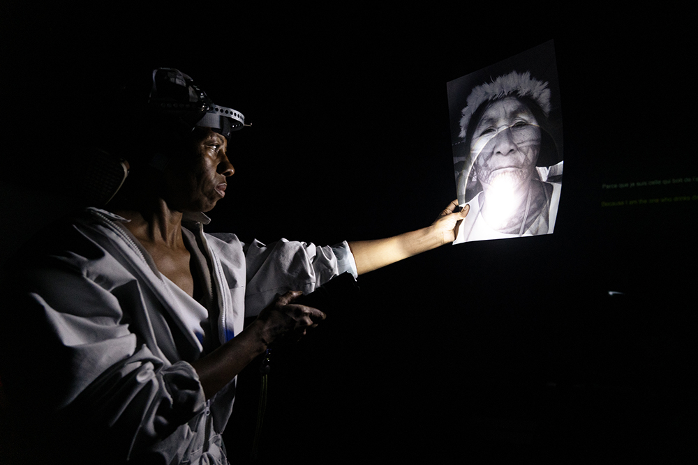 另一位來自巴西的女導演Gabriela Carneiro de Cunha以自己長期對環境議題的研究為基礎,創作一系列劇場演出和電影,致力為人為環境災難以及受害的原住民發聲。今年,她帶來劇場演出《塔帕若斯河》(Tapajós)。這條亞馬遜河的支流以前曾是亞馬遜盆地最大的清水河之一,近年來卻因大量非法盜採金礦而嚴重水土流失,河川也受到汞污染,當地原住民因而得到嚴重程度不一的神經系統疾病,汞尤其會毒害孕婦及未出生的孩子。在演出中,表演者在現場沖洗大幅照片,一方面連結19世紀前沖洗照片的化學物質為汞的面向,另一方面,照片中呈現塔帕若斯河的美麗地景、在河裡玩耍的孩童和人們、從河裡捕捉到的魚蝦,同時也呈現為汞中毒疾病所苦的原住民母親們的肖像。與此同時,可以聽到照片裡的母親們的錄音,她們憤怒地吶喊:「我們是在為我們的土地、河流和生病的子宮而戰。」此作優美地融合了亞馬遜原住民祭儀和後殖民經濟結構理論,並以跨物種的「母親」為貫串全場的概念,獻給原住民母親、觀眾母親、河流母親、魚類母親、森林母親,及所有經歷過「成為母親」的人。