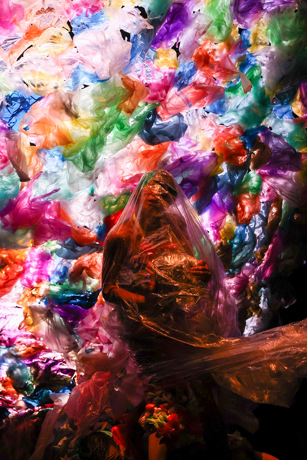 《最後的隧道》是TAI身體劇場於2025年秋天藝術節上演出的作品,發展自團長暨導演瓦旦.督喜於《PAR表演藝術》雜誌上發表的同名極短篇小說。儘管脫胎自既有文本,舞作本身仍能獨立觀之,而在演後座談中,與談人更言:在這裡,身體不再是傳達欲傳達的意象或文本的「媒介」,而是所有發生的「場域」。整齣舞作扣合太魯閣族的創生神話,以人從石縫中迸出的場景為始;然而,塑膠袋構成的舞台與服裝,卻營造了非常衝突的「末日感」,讓原本的創生意義持續衍生,予以觀眾在災難中倖存、向死而生的聯想可能。