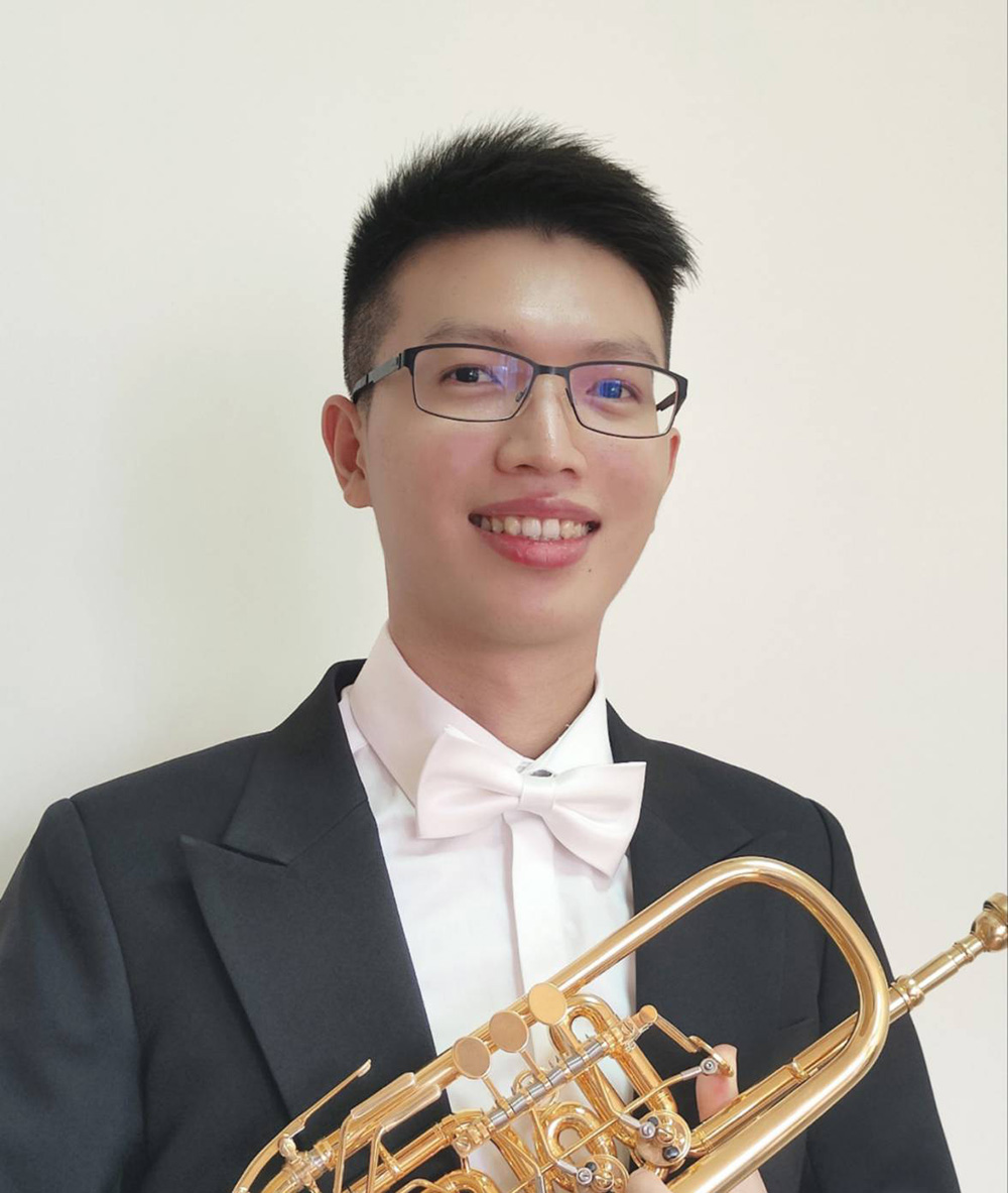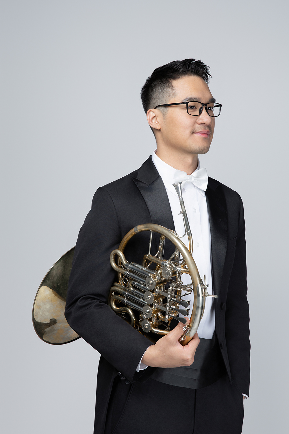 進入北市交已6、7年的王濟陽,高中時才轉吹法國號,大學期間在北藝大攻讀新媒體藝術學系,並雙主修音樂系,2019年殷巴爾甫到台灣的側臉宣傳畫像還是來自他的筆下。這次演奏馬勒第5號交響曲時,他接受到指揮殷巴爾的信任與自由空間:「我感覺上他好像沒有要指揮我,我就自己吹了(笑)。他基本上沒調整我什麼,給了我很大的空間去表現。」這種信任讓王濟陽能更自然地表達音樂中的細膩情感,也增加了他在詮釋上的自信。