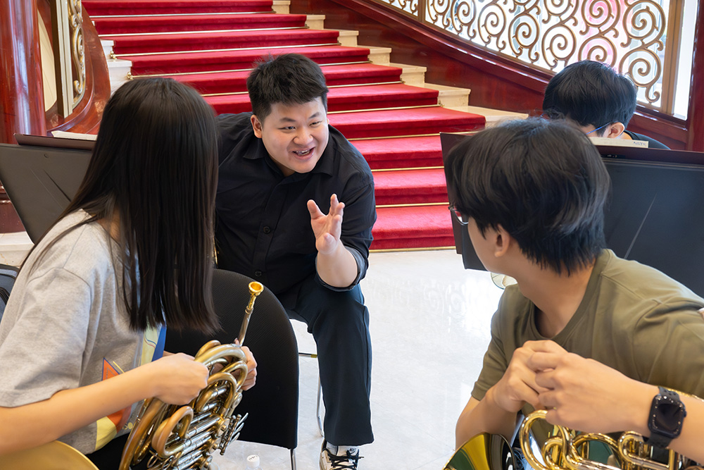 經歷這場並肩彩排後,NSYO學員們深刻體驗到團隊合作的藝術。小提琴手林芷卉說:「以前排練時不會特別注意細節,但經過柏林愛樂老師指導後,我開始更在意聲音的平衡與彼此的配合。」同樣是小提琴手的鄧景倫則說:「在心態上,我把柏林愛樂的音樂家們當作同事一起創造音樂。每個聲部都要像拉室內樂一樣,努力融合在一起。那一刻,當整個樂團同時發出聲音,真的非常美妙。」法國號學員林鼎洋分享了克服舞台緊張的體悟:「老師建議我放鬆吹奏,不用刻意控制,只要自然發聲就能達到理想效果。」長號學員鄧九瑜則說:「即使是很小聲的段落,也要用最好的聲音去演奏,這讓我學會如何讓低音更主動地發聲。」