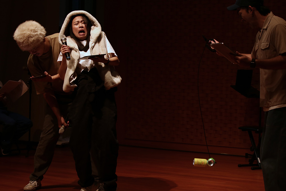 如果問我,我會說:讀劇需要排練。不是排這個劇本要怎麼演,而是排怎麼說故事。怎麼讓一場「聆聽」的形式,也能帶著觀眾去感受劇本時空中節奏、情緒與風景。排練的目的是讓劇本長出屬於它自己的心跳,讓觀眾願意「聽下去」。然而讀劇可以是怎樣的形式呢?如果可以我還真希望可以挑戰讓觀眾躺著聽,演員就在觀眾身邊走來走去,讓讀劇不再只是被在意呈現時的畫面,而是更需要把劇本中的文字化為可靠的引導,你想要睜開眼睛看的時候,你會看到不熟悉的視覺狀態,例如都只看到演員的下顎,可能在這樣視覺失去一部分的判斷後,聽見某些畫面就更來得容易了吧。