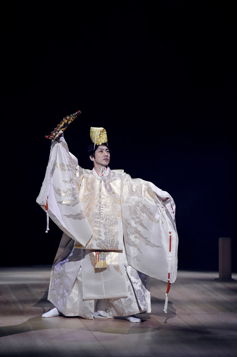 本次《狂言劇場》的劇目安排,精湛展現了狂言從古典到當代的優雅轉身。充滿明朗喜慶氛圍的女婿狂言代表作《二人袴》,透過天真女婿與手忙腳亂的父親共穿一件長袴的窘境,傳遞狂言撫慰人心的溫馨詼諧;95歲的人間國寶野村万作親自演出的《月見座頭》,則以簡約風格刻畫盲人與年輕男子在月下相遇的風雅情誼,以及隨之而來出乎意料的結局與人性的複雜難解;壓軸演出,由野村萬齋歷經15年醞釀的《MANSAI波麗露》,以拉威爾的西方古典名曲交織狂言《三番叟》的靈魂,在螺旋般向上攀升的節奏中,濃縮展現從不動的靜(死)到復活與再生的一生輪迴。